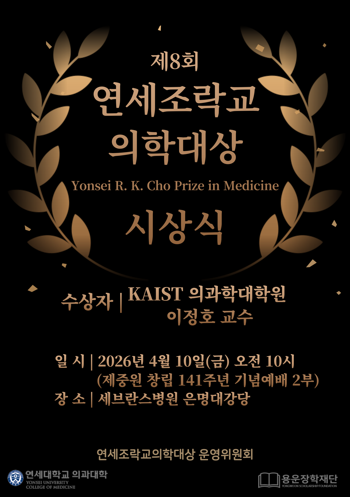 이번에는 KAIST 이정호 교수님께서 선정되셨고 식순 중 수상자 기념 강의가 예정되어 있습니다.